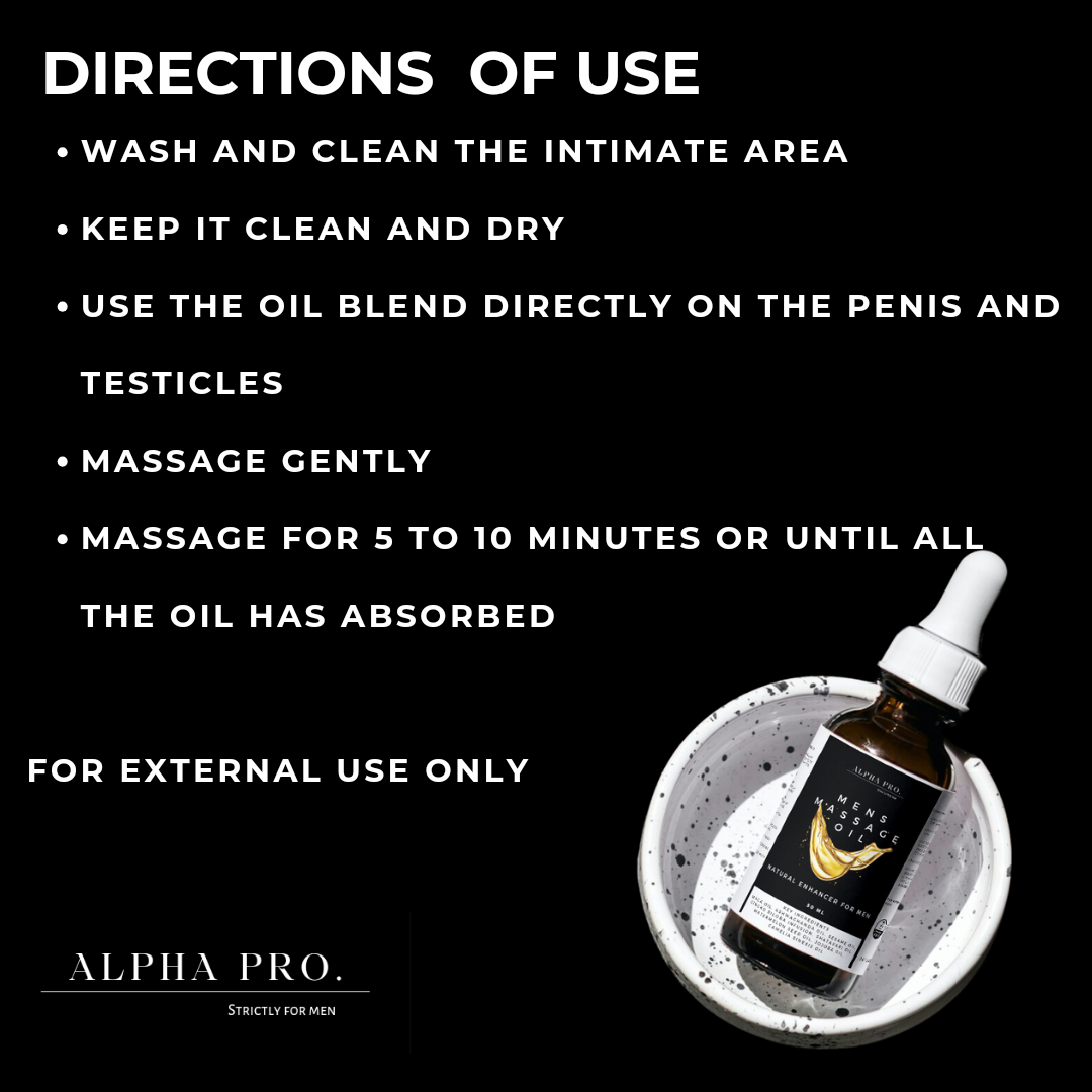 apply generously to the desired area for optimal results. massage for 5 to 10 minutes or until the oil is fully absorbed, adjusting the pace to your preference. explore different techniques, and consider targeting other erogenous areas if desired. If used as advised - the men's massage oil will have you going all night